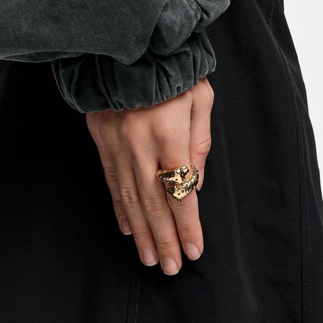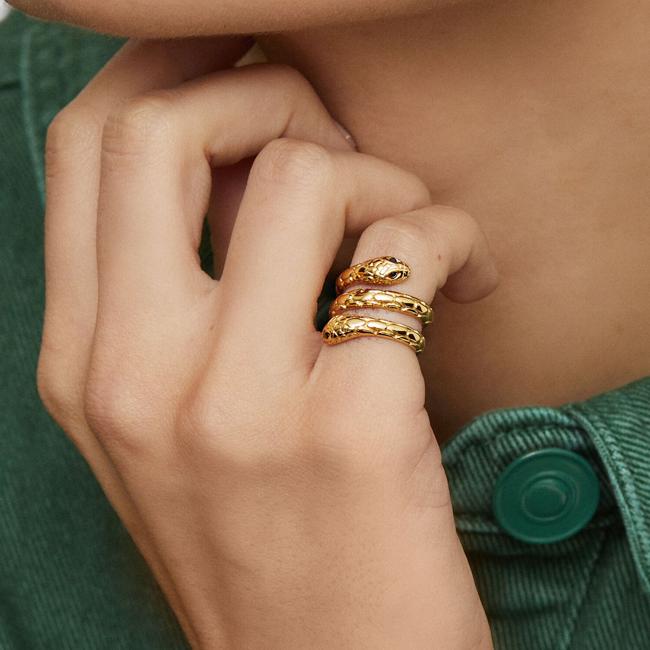Вы также можете подписать этот вариант ПарфейПолем Это кольцо в форме змеи, которое образует три кольца, которые окружают палец. Он сделан из стали, для мизинца и стоит 19,99 евро.
