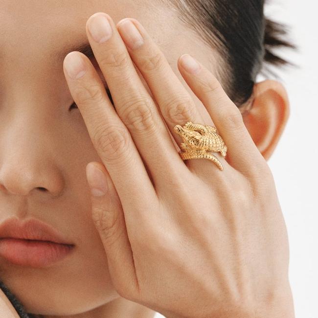 Это кольцо из Savage Collection Аристокраз Исследуйте сильную и мощную сущность крокодила, через руку, вырезанную учителями ювелирных изделий, и это заставит вас зажечь самую дикую сторону. Это 925 серебряного серебра в желтом золоте в 18 лет и стоит 169 евро.